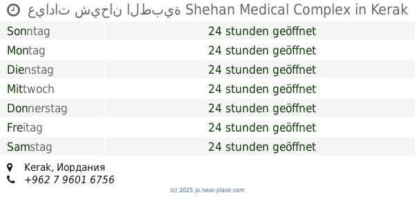 | Donnerstag | 24 stunden geöffnet | |||||