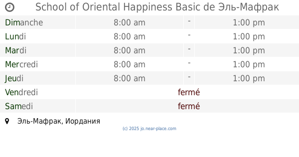 | Samedi | fermé | |||||