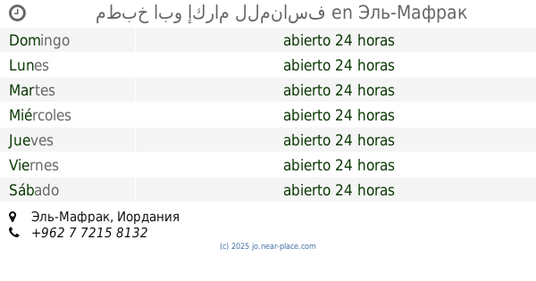 | Domingo | abierto 24 horas | |||||