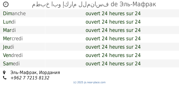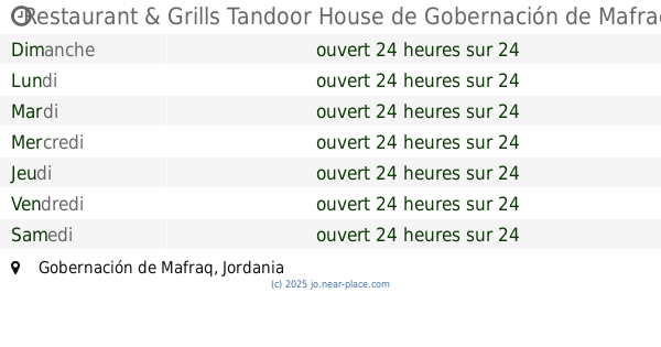 | Samedi | ouvert 24 heures sur 24 | |||||