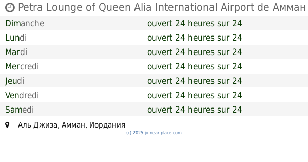 | Samedi | ouvert 24 heures sur 24 | |||||