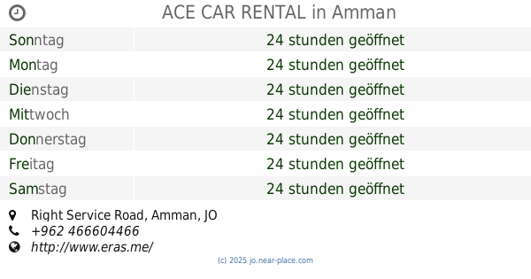 | Sonntag | 24 stunden geöffnet | |||||