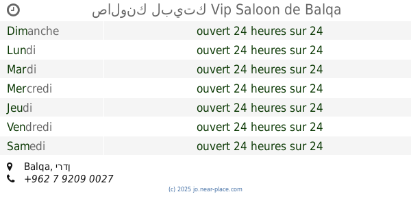 | Samedi | ouvert 24 heures sur 24 | |||||